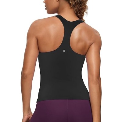 Butterluxe Workout Tank Tops for Women Built in Shelf Bras Padded - Racerback Athletic Spandex Yoga Camisole
