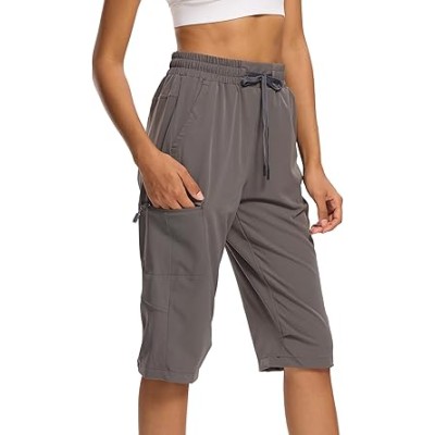 Women's Hiking Long Shorts Knee Length Lightweight Quick Dry Cargo Athletic Bermuda Beach Shorts with Zipper Pockets