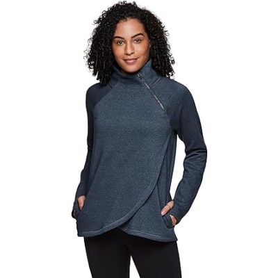Activewear Women's Fleece Sweatshirt Fashion Pullover With Pockets, Zip Mock Neck and Thumb Holes