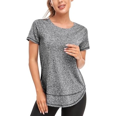 Womens Short Sleeve Workout T-Shirts Stretchy Lightweight Crewneck Athletic Running Lounge Tee Tops