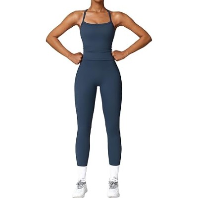 Womens Workout Sets Two Piece Cross Back Tank Top Matching High Waist Leggings Sets Gym Outfits Work Out Clothes