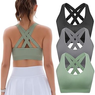 Padded Sports Bras for Women: Support Strappy Adjustable Straps Cross Back Sport Bra Pack for Workout Yoga Running Gym