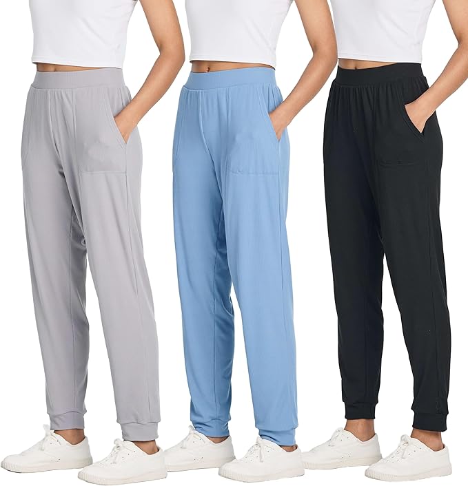 3 Pack: Women's Ribbed Lounge Jogger Cuffed Yoga SweatpantsPockets (Available in Plus)