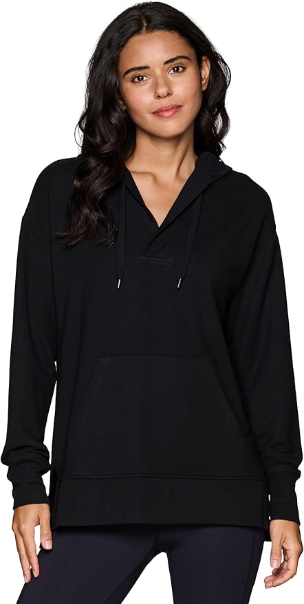 Active Women's Hoodie Tunic in Regular/Plus Sizes, V-Neck Relaxed Fit Lightweight French Terry Sweatshirt with Pocket