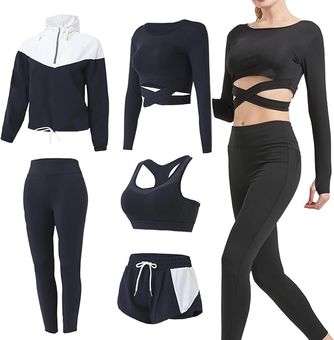Workout Sets for Women, 5 PCS Gym Athletic Sets Yoga Running Outfits Tracksuit Activewear Sports Clothes