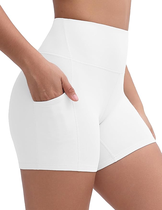 Women's High Stretch Workout Shorts Tummy Control Running Biker Yoga Shorts with Side Pockets