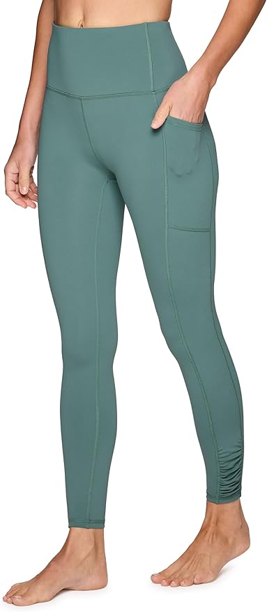 Women's Full Length Fashion Workout Legging with Ruched Side, High Waisted Squat Proof Yoga Leggings with Pockets