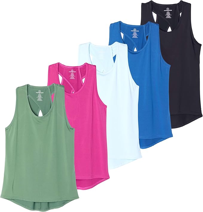 5 Pack: Women's Crossback Keyhole Open Back Workout Tank Top Dry-Fit Sleeveless Yoga Gym (Available in Plus)