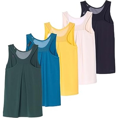 5 Pack: Women's Racerback Workout Tank Top Mesh Back Dry-Fit Sleeveless Running Gym (Available in Plus Size)