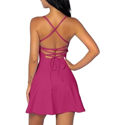 Womens Two Pieces Tennis Dress with Shorts Workout Open Back Active Golf Dresses
