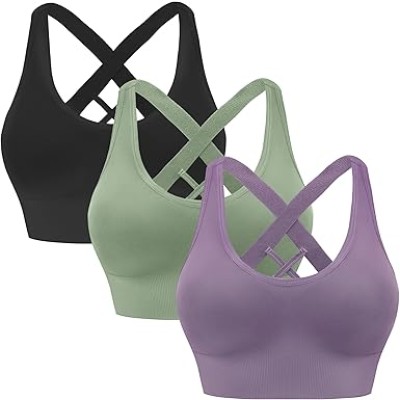 Sports Bras for Women High Impact Cross Back Strappy Bras Cropped Padded Seamless Workout Yoga Bras Set
