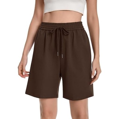 Womens Athletic Sweat Shorts Drawstring High Waisted Short Baggy Lounge Cotton Long Bermuda Shorts with Pockets