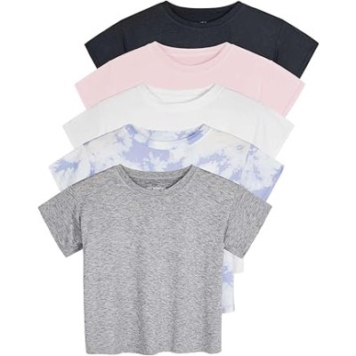 5 Pack: Women's Dry Fit Crop Top - Short Sleeve Crew Neck Stretch Athletic Tee (Available in Plus Size)
