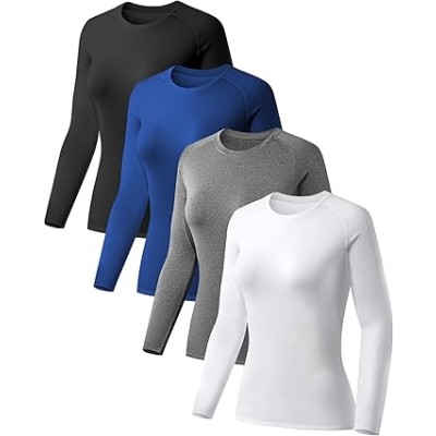 4 Pack Women's Compression Shirt Long Sleeve Performance Workout Baselayer Athletic Top Sports Gear
